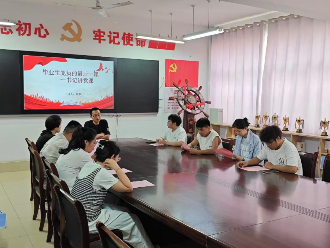 课上,郭振书记深情寄语毕业生党员:强调理想信念是共产党人精神之“钙”,嘱咐大家常补精神之钙、以初心照亮前路;指出担当作为是党员的责任使命,号召大家在岗位上勇挑重担、争当先锋;倡导文明离校,要求大家以实际行动展现责任担当,为母校留存温馨记忆。毕业生党员专注聆听、认真记录,眼中满是对未来的憧憬与坚定。