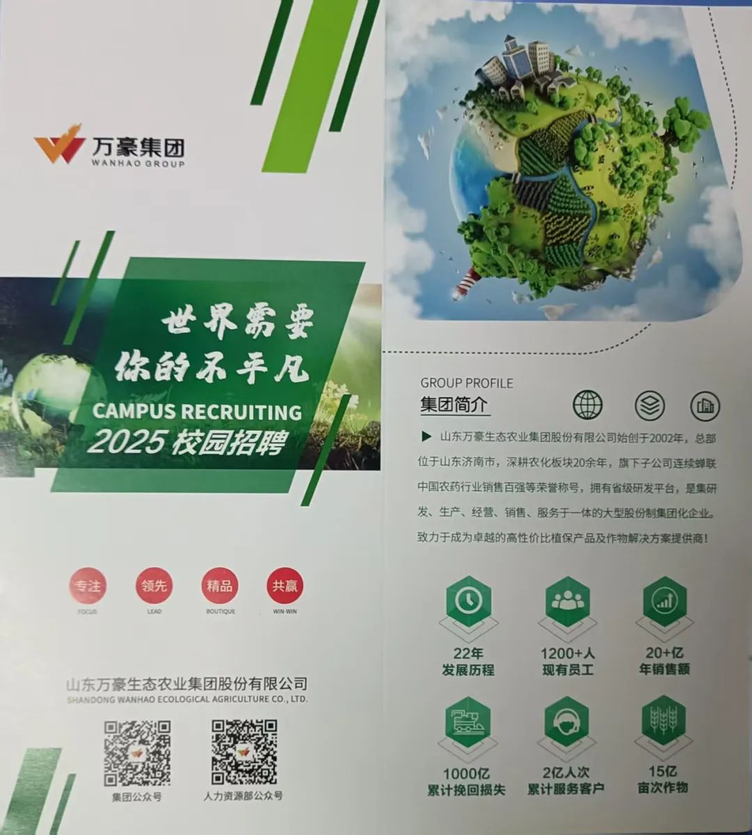 山东万豪生态农业集团股份有限公司是集研发、生产、经营、销售、服务于一体的大型股份制集团化企业。招聘10名产品经理助理,要求植保、农学相关专业,薪资9000-12000。