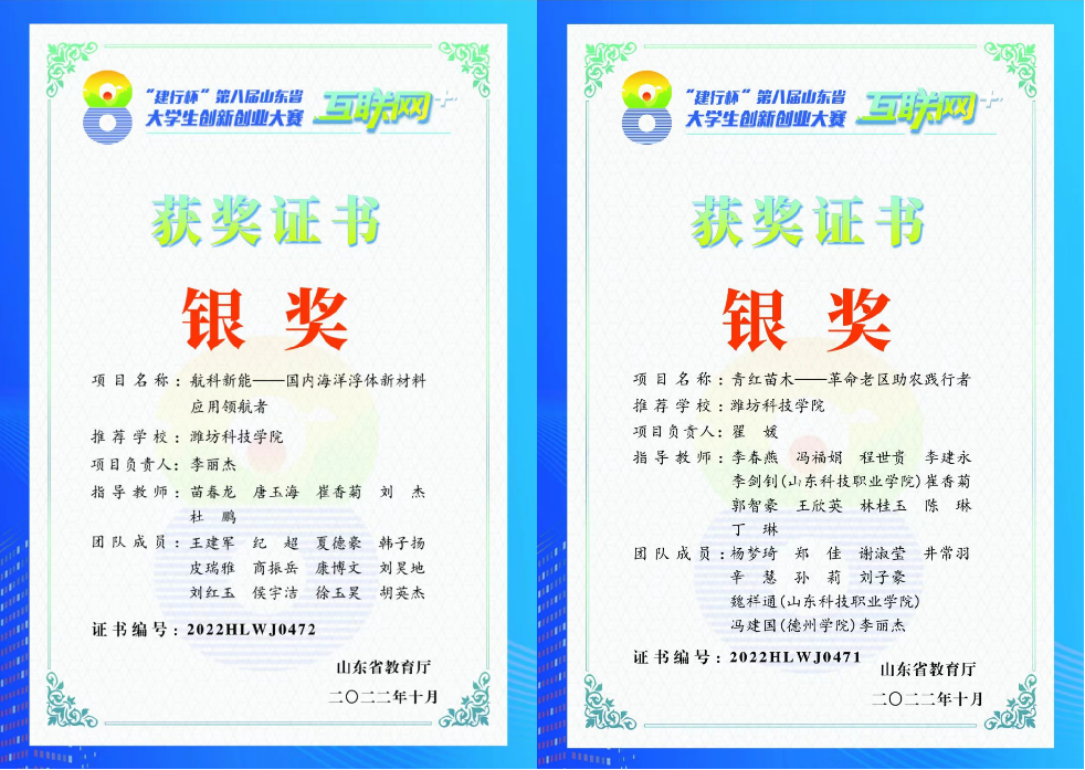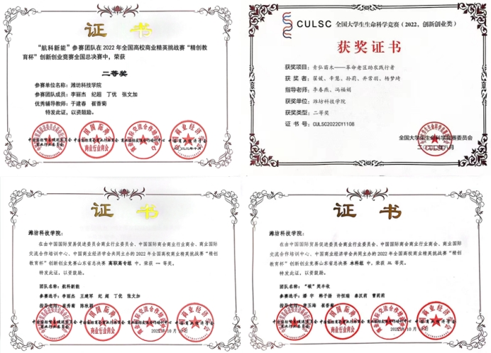 必赢bwin官方网站积极响应“以赛促教,以赛促学,以赛促创”的教育理念,号召我们学子参加系列创新大赛并屡获佳绩。在第八届“互联网+”创新创业大赛,荣获一金二银四铜好成绩;在第十三届“挑战杯”山东省大学生创业计划竞赛中力夺三金三铜,再创新高;在第九届大学生科技创新大赛中,全校二十个项目我们有八个项目被推荐至省赛。《青弘苗木——革命老区助农践行者》项目在全国大学生生命科学竞赛中斩获国家级二等奖。